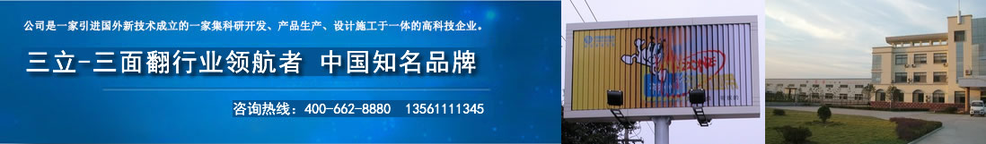 三立廣告設備有限公司是一家以及開發、設計、生產三面翻廣告牌和戶外廣告設備的生產企業。 目前公司擁有一套完善的現代化企業管理制度和獨具特色的企業文化機制,在倡導人性化管理,"以人為本"的經營管理模式下,公司日益壯大,產品質量不斷提升。